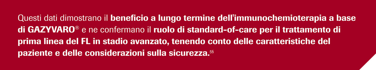 § GALLIUM è stato uno studio clinico internazionale, multicentrico, open-label, randomizzato di fase III di immunochemioterapia con Gazyvaro® vs rituximab in pazienti con iNHL precedentemente non trattati in stadio avanzato.5