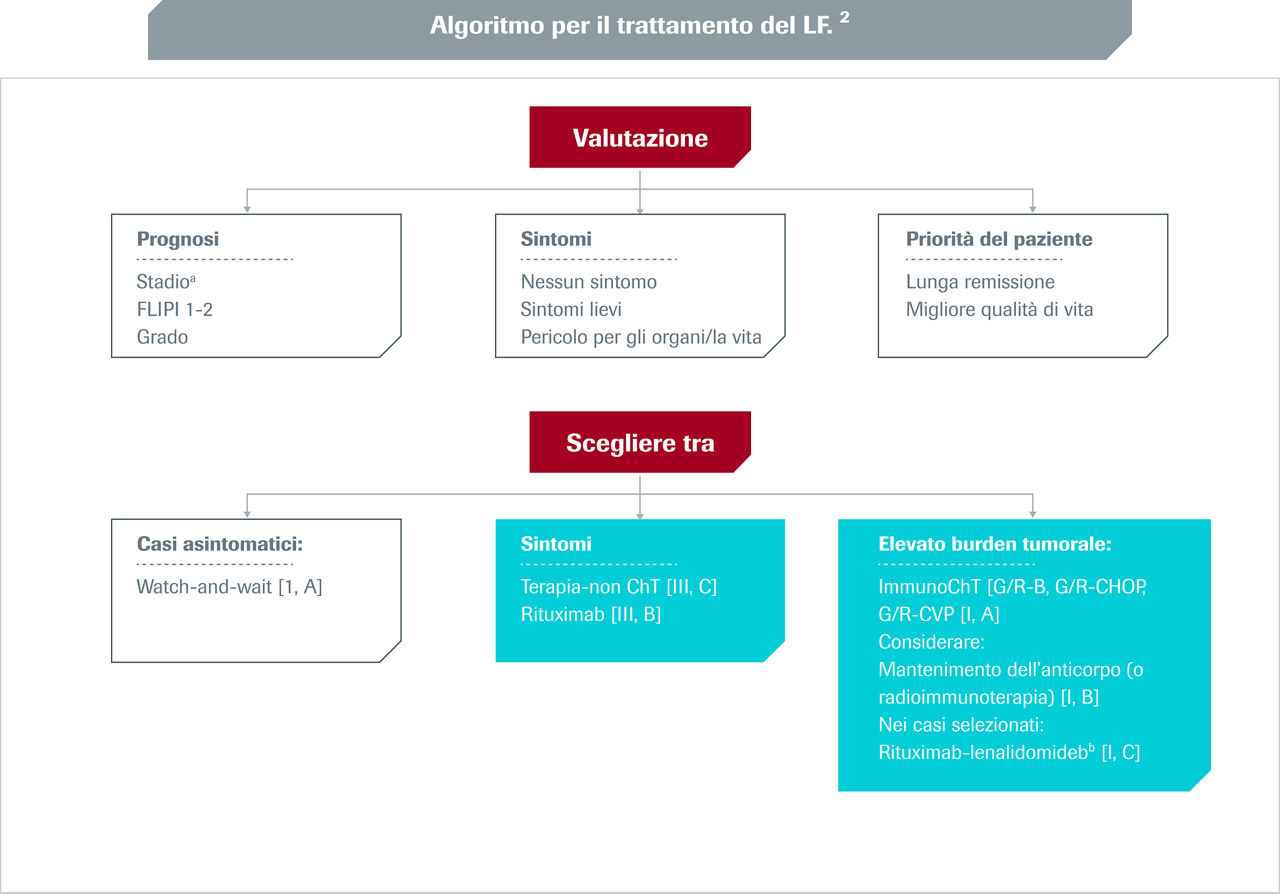 *Le biopsie del nucleo devono essere effettuate solo nei pazienti senza linfonodi facilmente accessibili (es. posizione retroperitoneale), per valutare l'eventuale trasformazione in tali siti.2